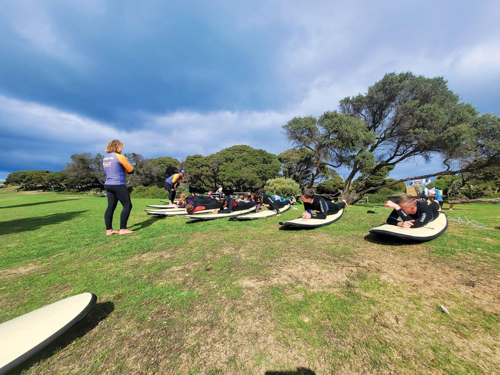Likewise, our Youth Surfing Day, at Torquay, which started peacefully enough at Cosy Corner but then had to be reorganised on the run as the surf took a turn. The 11 kids were happy to abandon their surfboards for body boards and had a great time getting wet. Lunch was fish and chips, and no phones! Chats and spaces to engage, compare notes and support one another are more important to these days than the surfing itself, and the kids embraced the opportunity. Some games, including touch rugby, rounded out a fun day on the beach.